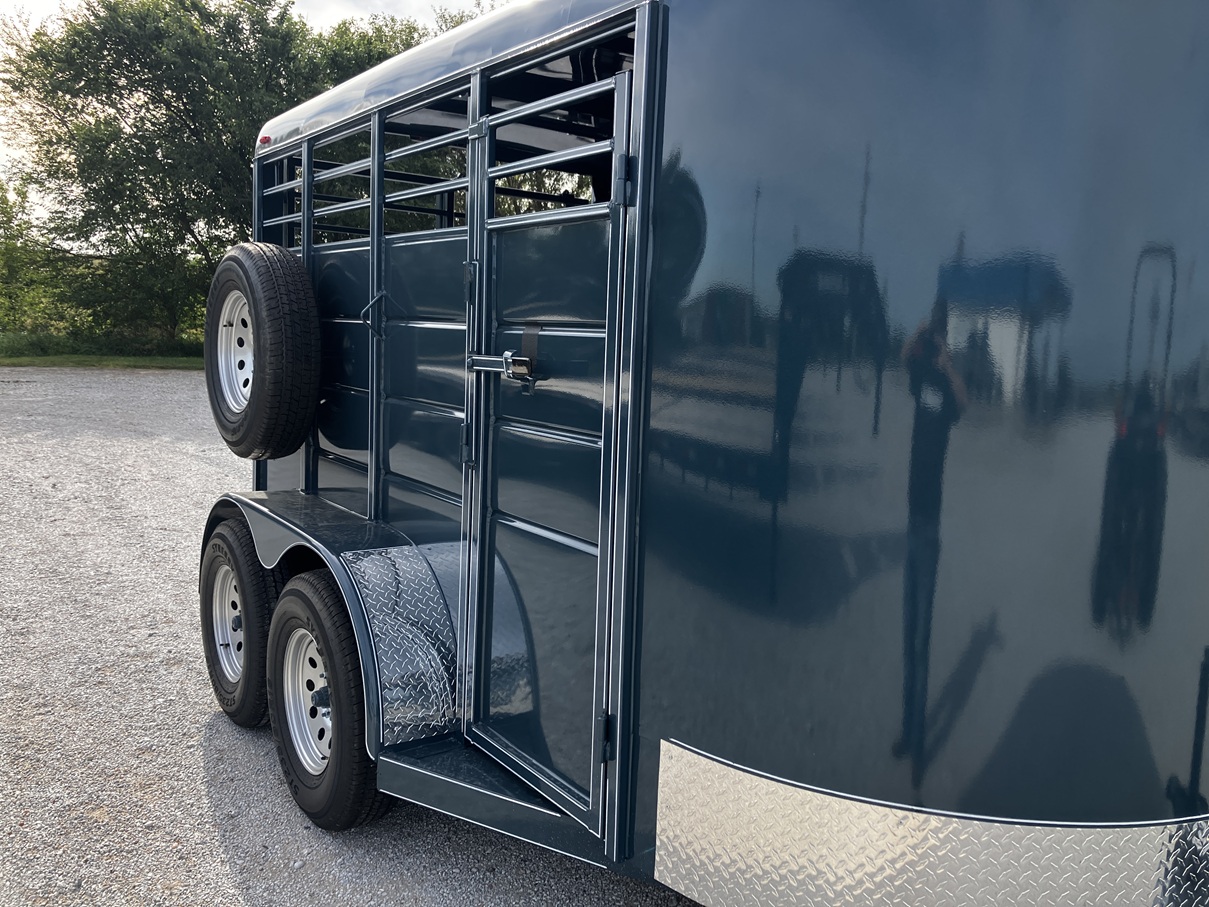Brand New - In Stock - 2025 Calico Trailer MFG - 12’ Bumper Pull Stock Trailer - 6’ Wide - 6’6” Tall - Chrome Appearance Package - 16” Mod Wheels - 10 Ply Radial Tires - Spare Mount - Matching Spare Included - Lengthways Treated Flooring - 1 Piece Center Gate - Slider Rear Gate - Slam Latches - Escape Door - 2” Ram Coupler -Top Wind Jack - 7-Way RV Style Plug - LED Lights - Break Away Kit - 1 Year Warranty - Financing Available