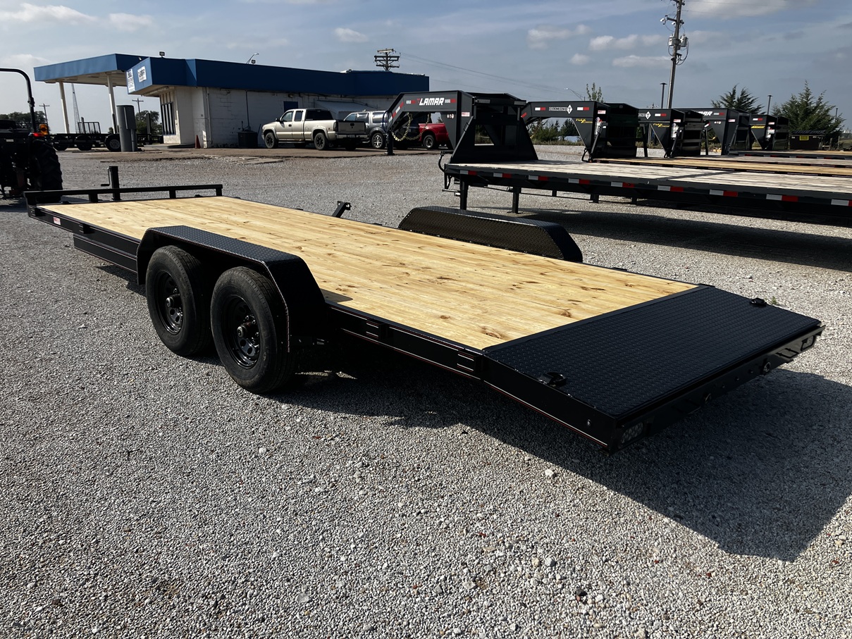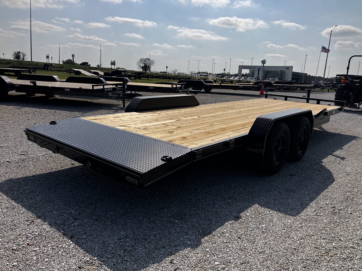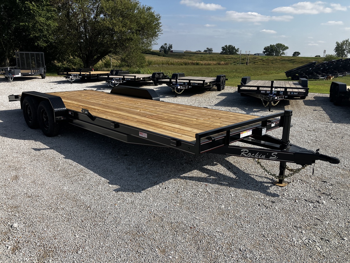 Brand New - In stock - 2025 Rockin' S Trailer MFG - 22' x 83" - Medium Duty Car Hauler - 5,200# Dexter Ez-Lube Axles - Electric Brakes on Both Axles - Break Away Kit - 5" Channel Frame and Tongue - Black Mod Wheels - 10 Ply Radial Tires - Spare Tire Mount - Matching Spare Included - 2ft Diamond Plate Dovetail - 4x Weld On D-Rings - 10x Stake Pockets - 5ft Rear Pull Out Ramps - Smoked LED Lights - Sealed Wire Harness - 7 Way Rv Style Plug - 7k Drop Leg Jack - Warranty - Financing Available