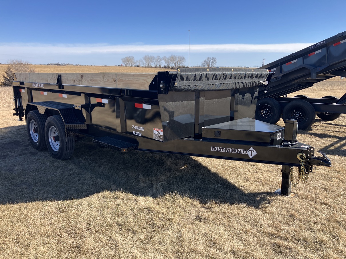 Brand New - In stock - 2026 Diamond T Trailer MFG - 16' x 83" Low-Pro Dump Trailer - 8,000# Dexter Electric Brake Axles - 8" 13LB I-Beam Tongue & Frame - 7 Gauge One Piece Floor -24" 10 Gauge sides - 7 Gauge Maxx Rails - Removable Side Board Extension Kit - Silver Mod Wheels - 14 PLY Radial Tires - Spare Tire Mount - Matching Spare Included - Oversized Lockable Toolbox - Power Up/Power Down/Gravity Down Remote w/10ft Cord - 10K Stillwell Hydraulic Jack - Stillwell Scissor Hoist Lift - Heavy Duty Slide in Ramps - Rear Loading Support Stands - Dual Action Rear Gate(Spreader Gate & Barn Door Combo) - Ram 21k 2-5/16" Adjustable Coupler - LED Lights - Tarp Kit - 3 Year Structural Warranty - Financing Available
