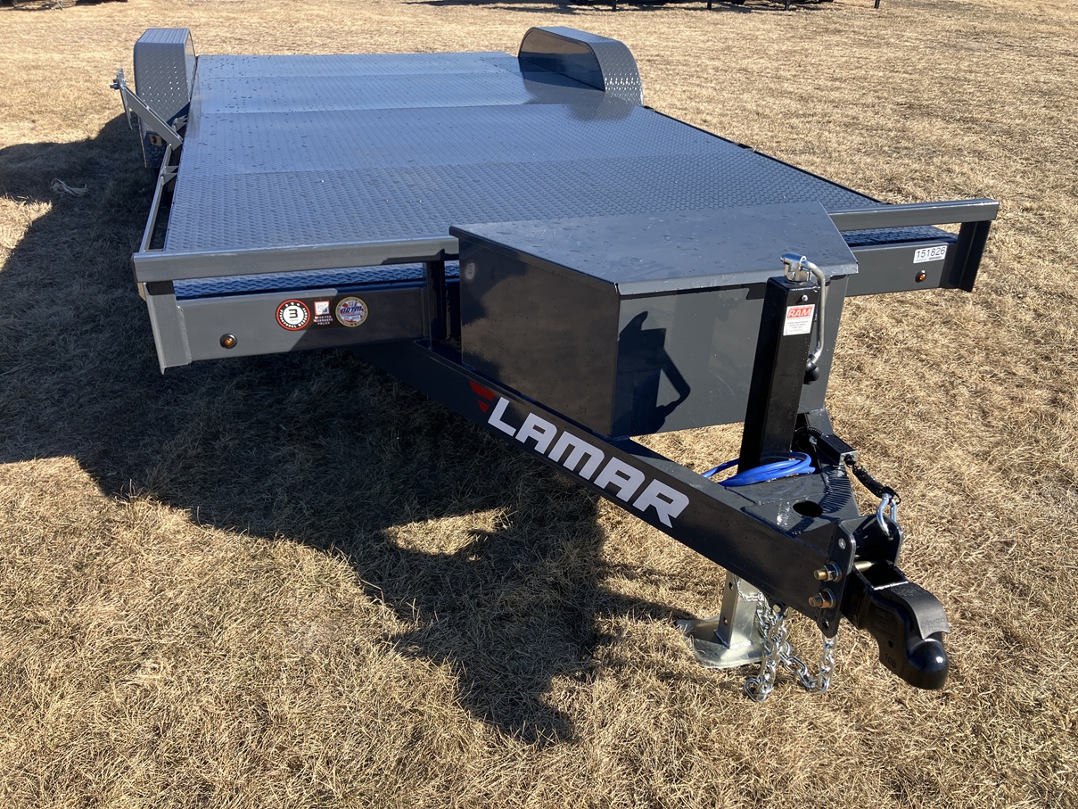 Brand New - In stock - 2026 Lamar Trailers CE - 20' x 83" Steel Deck Car Hauler - 11 Guage Diamondplate Steel Floor - 18' + 2' Dovetail - 3,500# Lippert Ez-Lube Axles - Electric Brakes on Rear Axle - Break Away Kit - 5" Channel Frame and Tongue - Lockable Tongue Toolbox - Full Rub Rail w/Stake Pockets - Removable Fenders - Black Mod Wheels - 6 Ply Radial Tires - Spare Tire Mount - Matching Spare Included - 4' Dovetail - 5ft Rear Pull Out Ramps - LED Lights - 7 Way Plug- 7k Drop Leg Jack - Adjustable 2" Ram Coupler - 3 Year Structural Warranty - Financing Available
