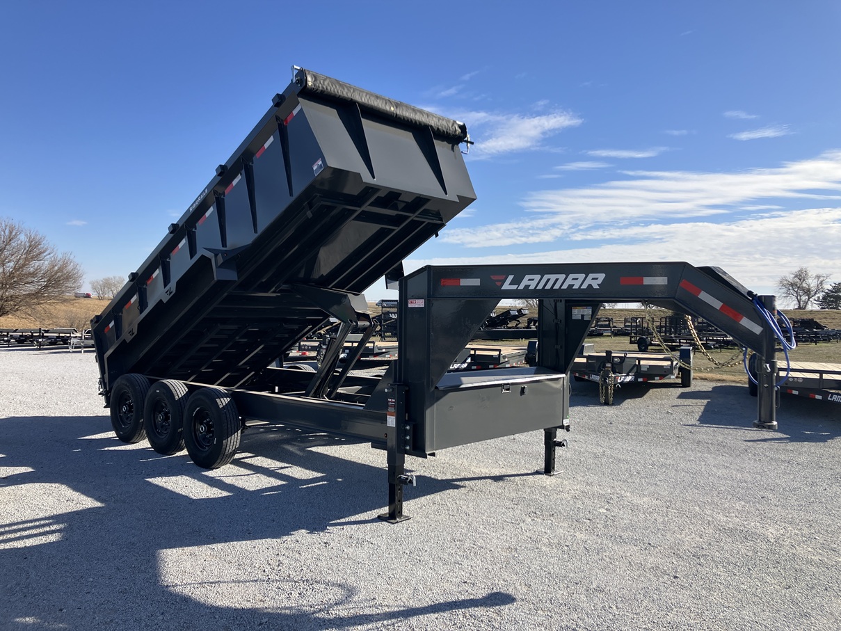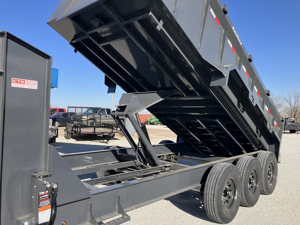 Brand New - In stock - 2026 Lamar Trailers 16’ x 83” Low Profile HD Dump Trailer - (3) 7,000# Ez-Lube Electric Brake Spring Axles - 21,000 GVWR - 15,530# Payload Capacity - 10” 13lb I-Beam Neck and Frame - Dual 10k Drop Leg Jacks - 12" Spaced Crossmembers - 7 Gauge One Piece Floor - 10 Gauge 36” Sides - 7 Gauge Rigid Rail - Lockable Front Toolbox/Pump Box - 2-Way Rear Gate (Spreader Gate and Barn Door Combo) - HD Slide in Ramps - Easy Roll Mesh Tarp - 6x D Rings - 12x Stake Pockets - 16” Black Mod Wheels - 14 Ply Radial Tires - Spare Tire Mount - Matching Spare Included - LED Lights - Arctic Wire Harness - Deep Cycle Battery - Solar Charger - 3 Way Corded Remote (Power Up-Power Down-Gravity Down) - Tuff Wireless Remote Kit - KTI Pump w/Scissor Hoist - Lamar Gray Premium Powdercoat - 3 Year Structural Warranty - Financing Available