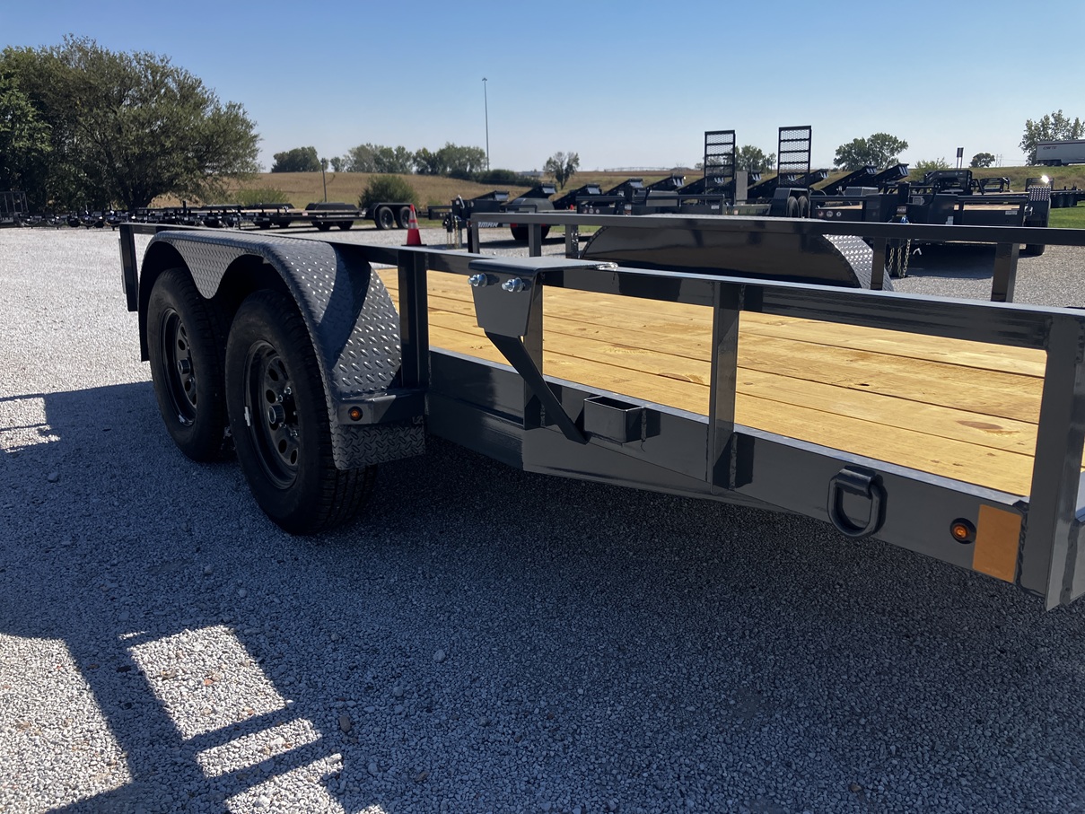 Brand New - In Stock -2026 Lamar UC 14' x 77" Tandem Axle Utility Trailer - 3,500# Lippert Ez-Lube Axles - Electric Brakes on Rear Axle - 15" Black Mod Wheels - 6 Ply Radial Tires - Spare Tire Mount - Matching Spare Included - 4" Channel Wrap Tongue- 2' Dovetail - Adjustable 2" Demco Coupler - 4x Weld On D-Rings - Flip Jack - LED Lights - 7 way RV Style Light Connector - Pair of Slide In Ramps - Safety Chains - 3 Year Structural Warranty - Financing Available